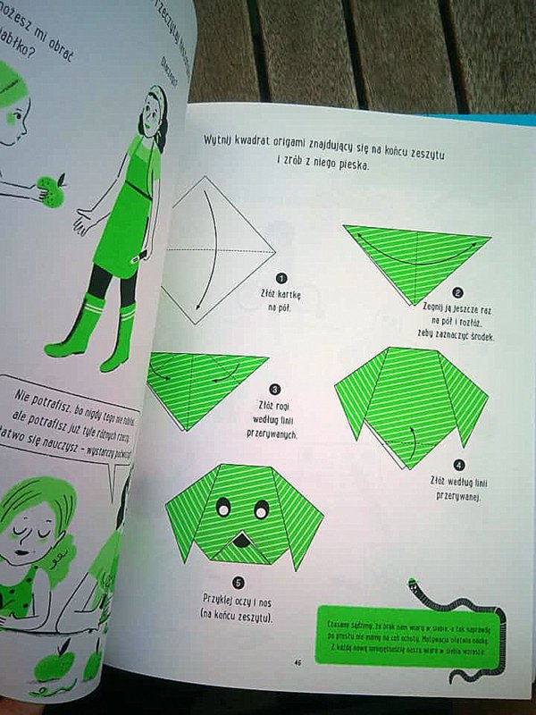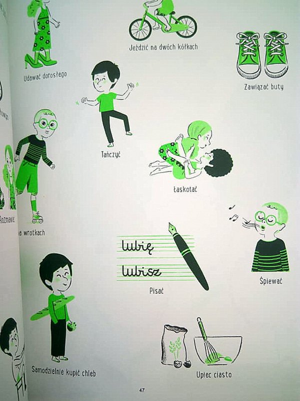 czwórką dzieci: Różą, Michałem, Zosią i Wiktorem. Na stronach dominuje zieleń, a