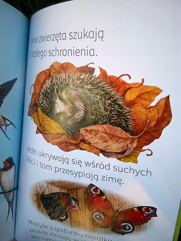 Jesienią liście zmieniają barwę, a zimą wszystko pokrywa śnieg. Piękne ilustracje oraz bardzo wartościowe
