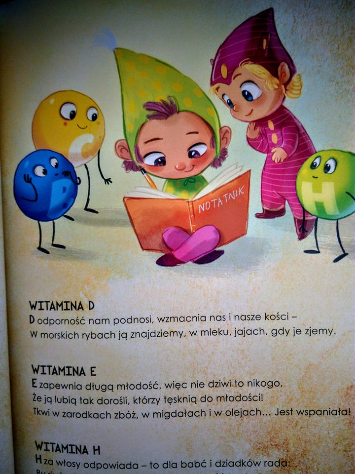 przyjemny sposób przedstawione są rymowanki opisujące działanie poszczególnych witamin