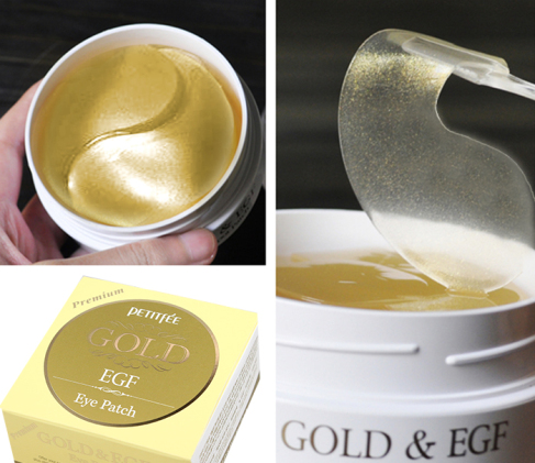 kształt typowy dla płatków pod oczy, są złotego koloru, gdyż zawierają złoto. Ich