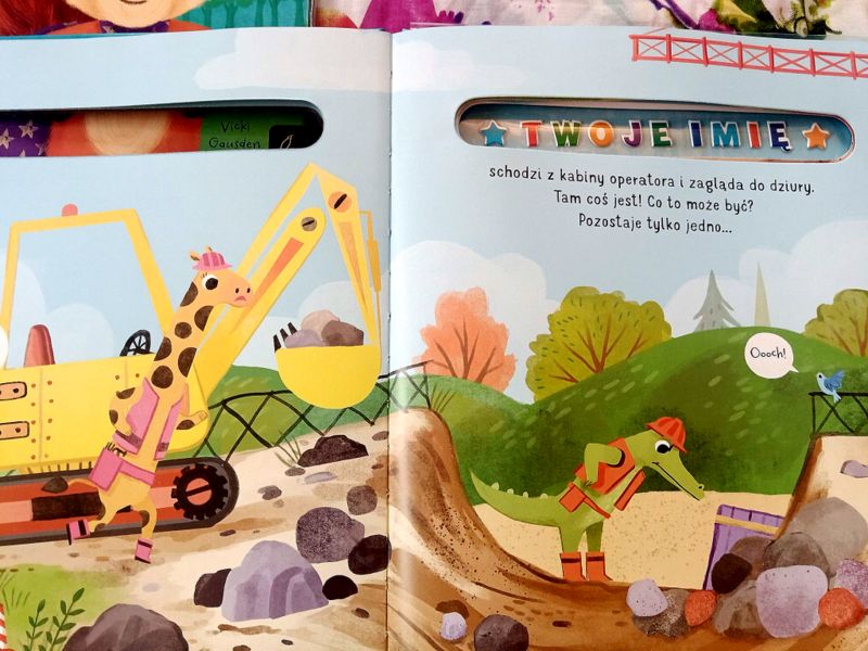 Każda opowieść składa się z kartonowych, śliskich stron oraz jednej, gdzie można wpisać/wykleić imię dziecka. Książka jest tak skonstruowana, że jest ono widoczne na każdej stronie, wplata się w tekst, tworząc ciąg opowieści.