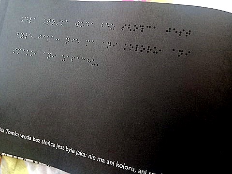 Co jest niezwykłe, to prócz tekstu znajdziemy zdania przełożone na alfabet Braille’a oraz ilustracje naniesione na papier w sposób pozwalający je wyczuć opuszkami palców z błyszczącym w świetle lakierem.