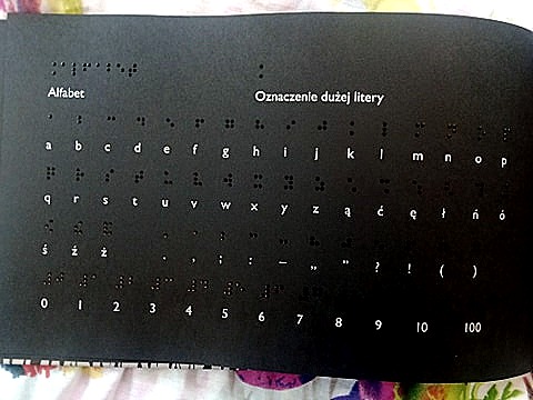 Na końcu książki znajduje się także rozpisany alfabet Braille’a. Można go poznać i spróbować się go nauczyć.
