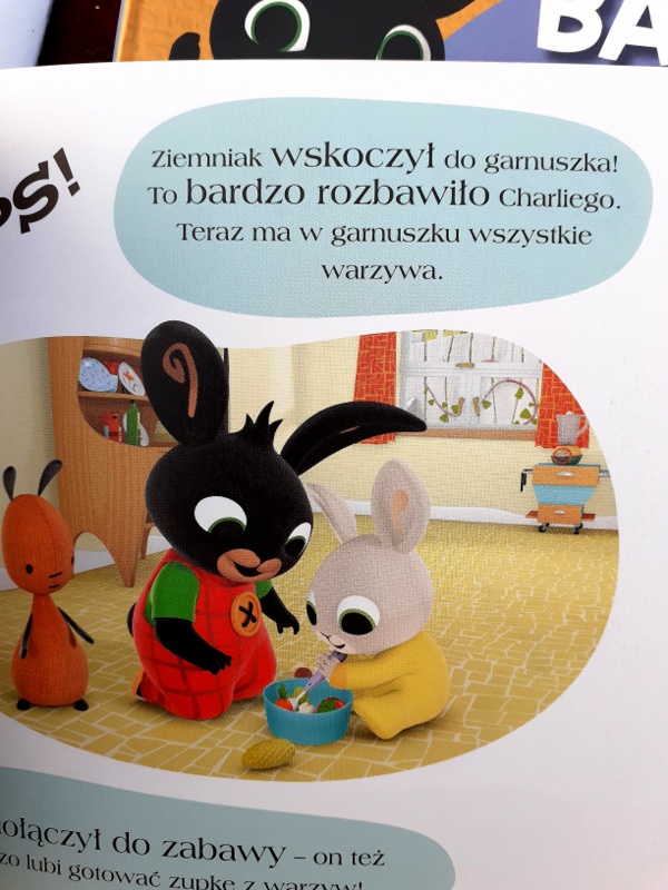 Powyższy zestaw jest naprawdę ciekawy i wręcz idealny dla fanów Binga. Oczywiście książki mogą być kupowane oddzielnie. Moim chłopcom bardzo się podobają. Jeśli chodzi o bajeczki, to musimy je czytać od deski, do deski, na jednym opowiadaniu nie da się zakończyć.