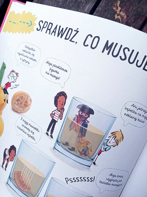 Te książki są naprawdę strzałem w dziesiątkę. Pozwolą wykonywać eksperymenty w zaciszu domowym, co uważam za ogromny plus, gdyż dziecko opatrzy się, osłucha i samo spróbuje, co na pewno zaplusuje w przyszłości, choćby podczas podobnych zajęć w szkole.