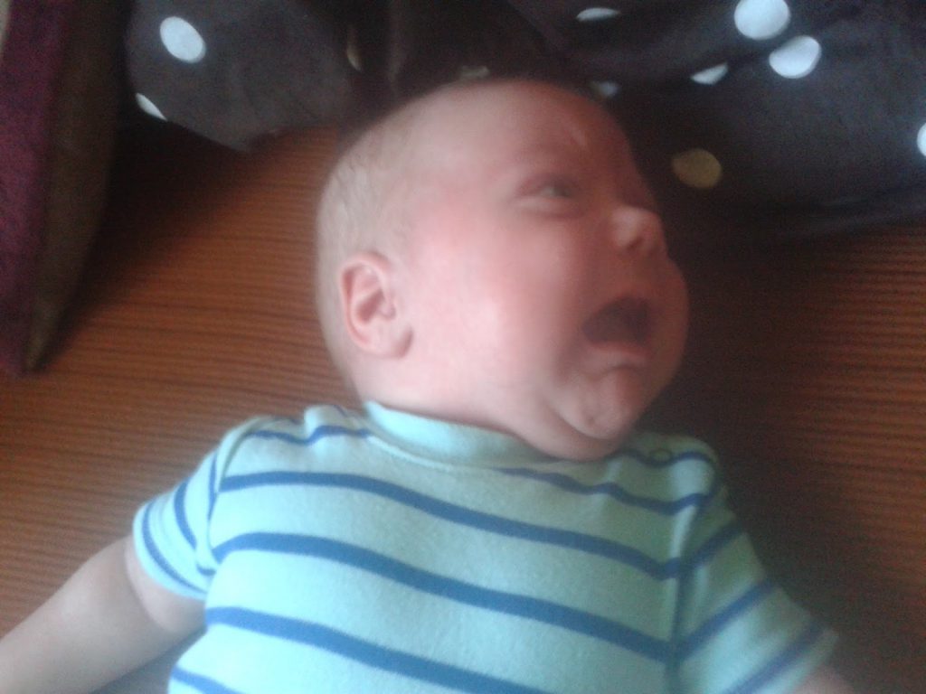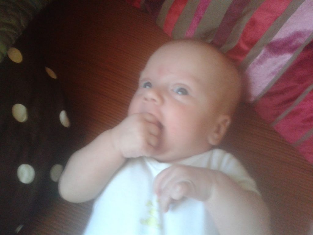 bratu zmieniłam pieluchę, położyłam obok po czym mój rzygliny syn zarzygał
