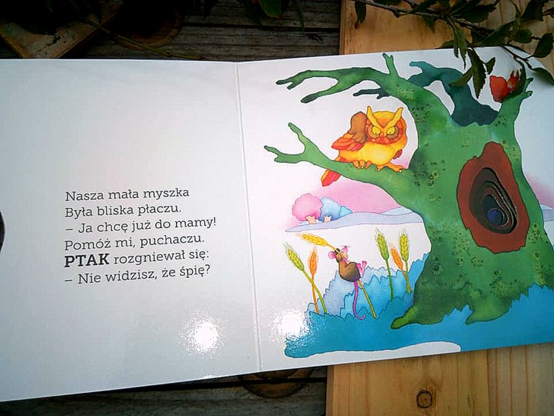 książeczki z otworkami. Wierszyki są mistrzostwem świata, przyjemne i mądre.